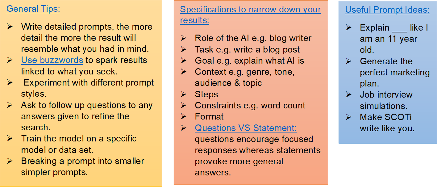 A collated list of tips and tricks for improving prompt creating skills can be found below: