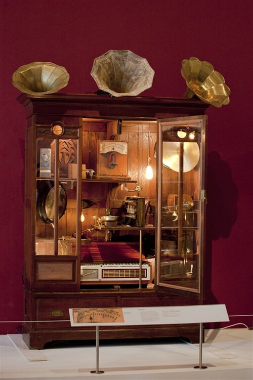 We then heard from a musical automaton named Cybraphon and, of course, its creator Simon Kirby. Cybraphon is described as “an emotional robotic band built from junk shop instruments, housed in an antique wardrobe, that googled itself every 15 seconds”. The artwork was commissioned in 2009 to be reflective of the growing obsession with social media platforms, it is one of Twitter’s first-ever “bots” and regularly tweets its mood (which is dictated by its popularity online) to its many followers.